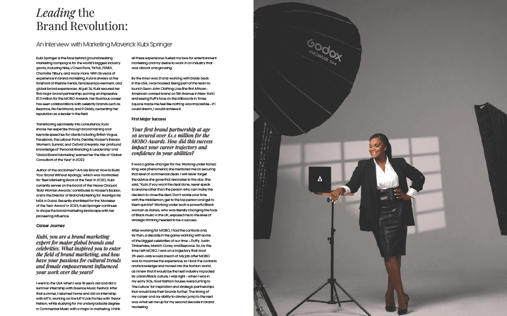 Alongside my commercial work, I’m currently a writer and editor at Black Business Magazine, a pioneering publication that champions Black-owned businesses in the UK, in partnership with Lloyds Bank. I manage contributors, shape editorial direction, and interview inspiring, high-profile figures - combining my journalistic roots with meaningful storytelling that amplifies underrepresented voices.